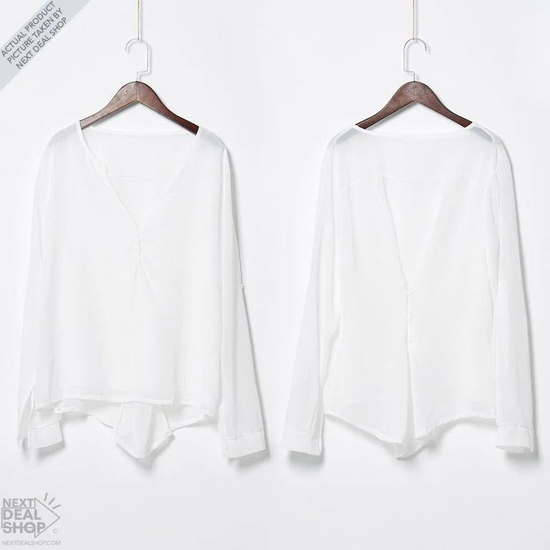 Uma blusa de manga longa básica super leve e abotoaduras que ajudam a ajustá-la. Combina com saia ou calça, para um look social. Ou shorts e jeans, para mais dia-a-dia.