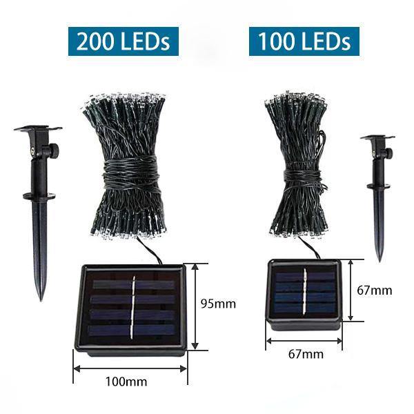 1 x 100 luzes de fadas de LED com painel solar OU 1 x 200 luzes de fadas de LED com painel solar |