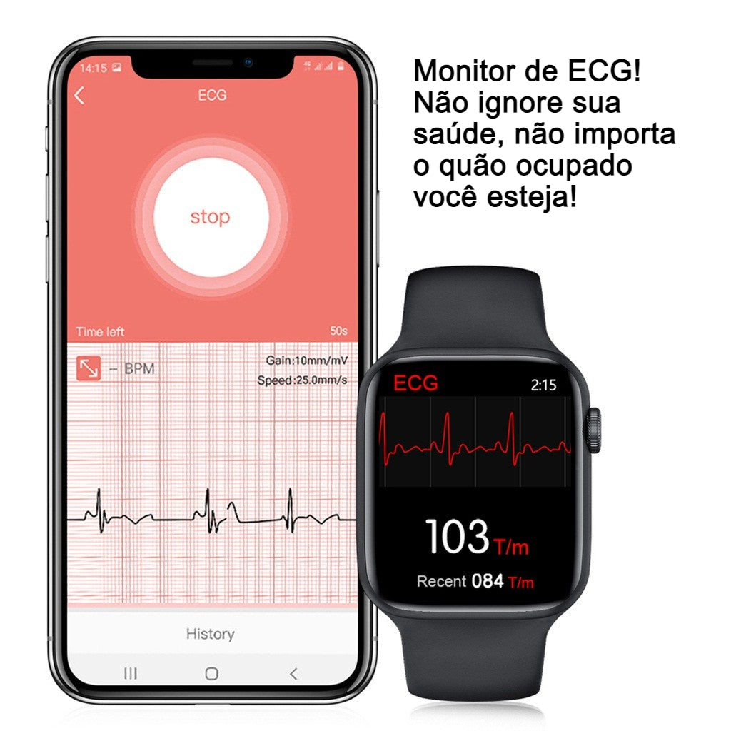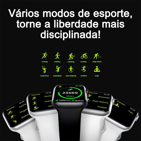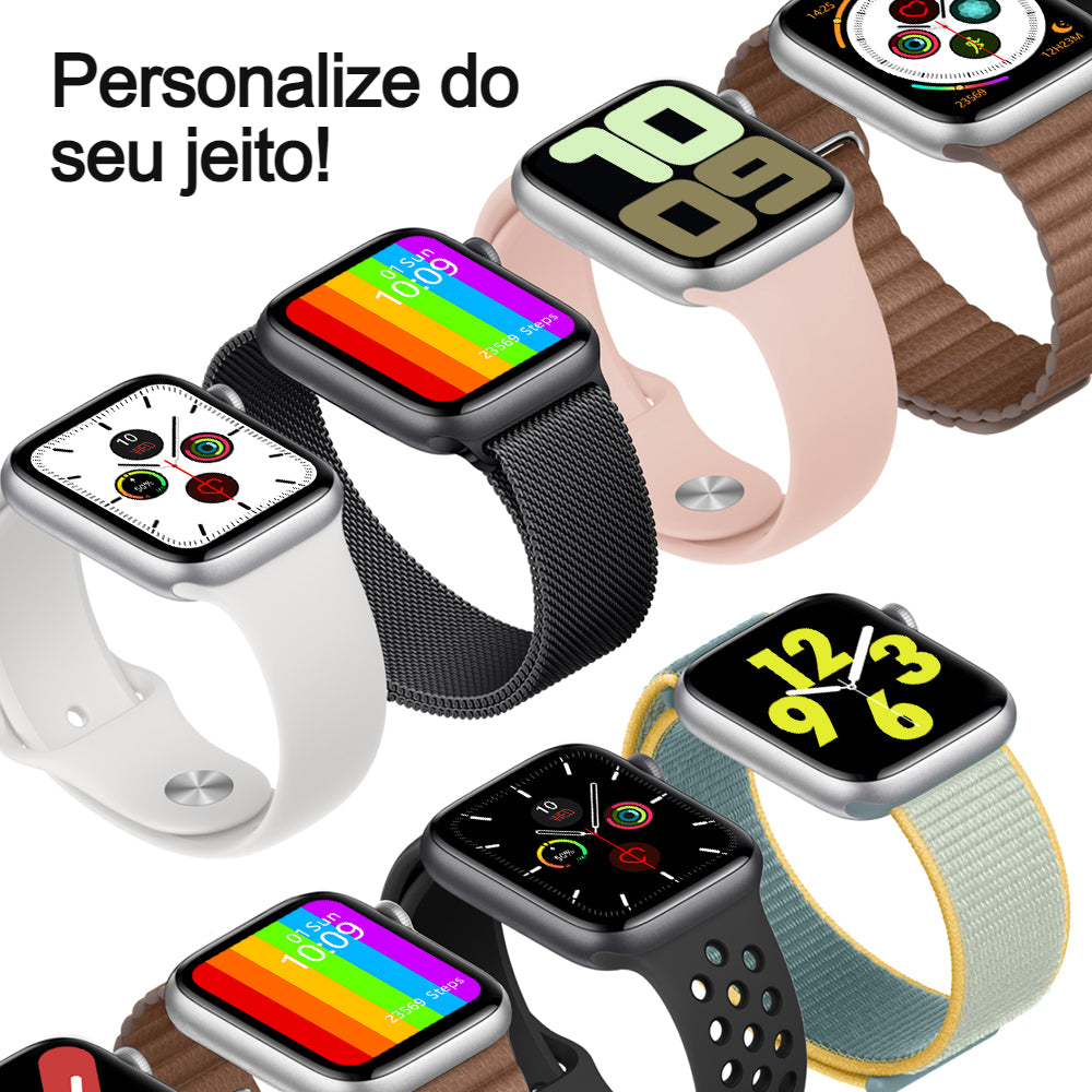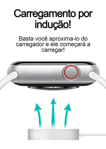 Você pode trocar sua watch face pelo aplicativo, ele é compatível com IOS e Android, troca a pulseira, tem carregamento por indução, entre outras funções super modernas!