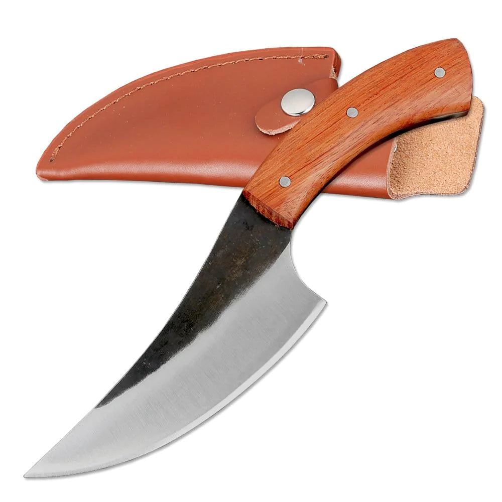 Essa faca para açougueiros profissionais vem com um estojo artesanal, que acaba tornando mais fácil o transporte da faca para onde quer que você vá.